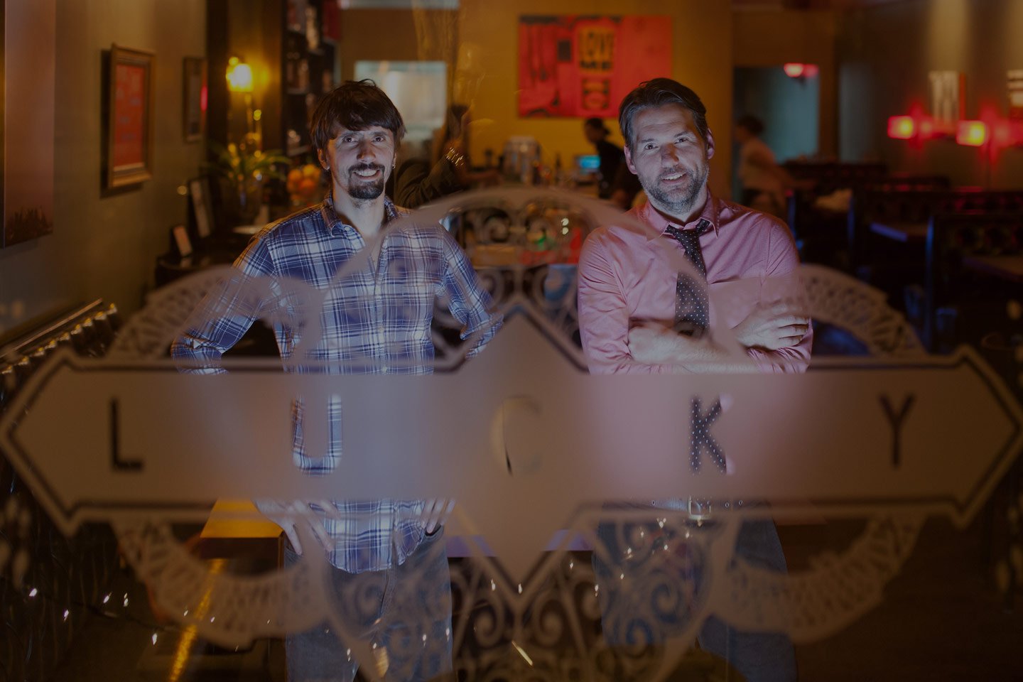 Band mates, friends, and co-owners Hunter Johnson and J.P. Powell have been operating Lucky since November of 2010, drawing their inspiration from establishments they visited while on the road playing in their band MY RADIO.